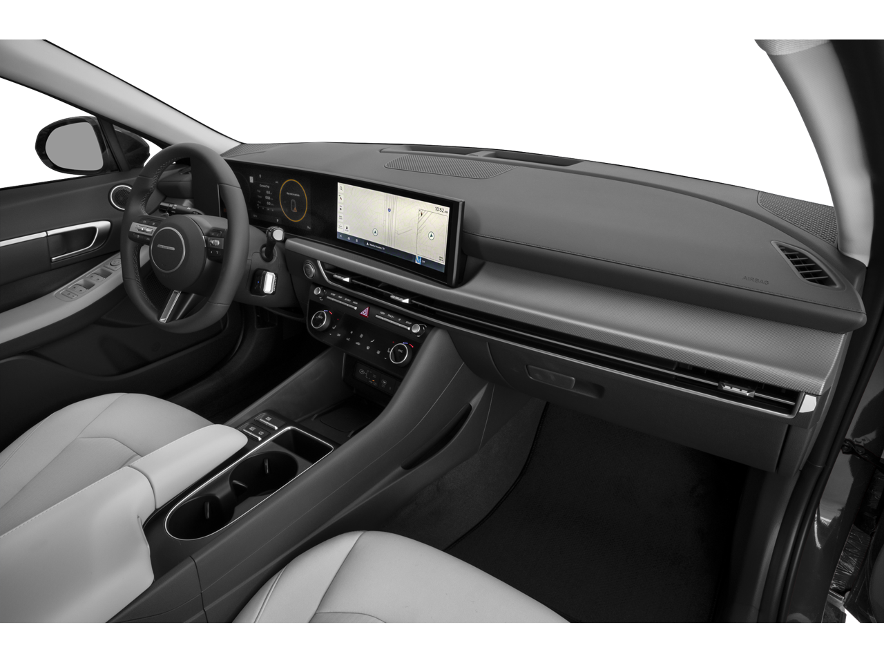- Radio: AM/FM/HD/SiriusXM -inc: 12.3" high-resolution touchscreen, 6 speakers (2 front door mounted speakers, 2 tweeters and 2 rear speakers), smartphone integration, Bluetooth, Over-The-Air updates, USB connectivity, Blue Link connected car, Android Auto/Apple CarPlay capability (wireless and wired) and shark fin design antenna w/SiriusXM reception